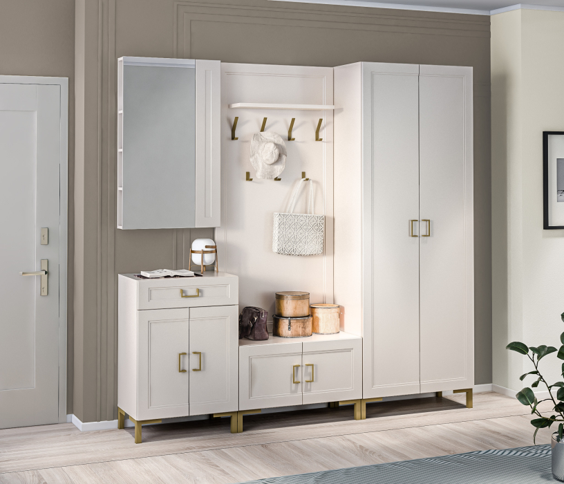 Золотистые ручки и ножки коллекции "Ассоль" добавляют неповторимый шик и изысканность, завершая образ тонким и стильным блеском. Эти акценты создают атмосферу роскоши и утонченности. Они играют роль визуального украшения, дополняя общий вид мебели и придавая ей особый шарм и элегантность.