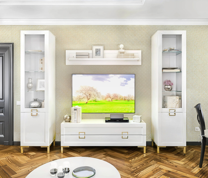 Модульная коллекция Ассоль в белом цвете — это стильное и функциональное решение для вашего интерьера. Корпус выполнен из качественного ЛДСП, а фасады из прочного МДФ, что обеспечивает долговечность и легкость в уходе. Элегантные золотые ручки добавляют изысканности и шарма. Модули коллекции можно комбинировать по вашему усмотрению, создавая уникальные и практичные решения для любого пространства, или выбрать из готовых комплектов.<br>Габаритные размеры гостиной: ширина 2500 мм, высота 2170 мм, глубина 410 мм