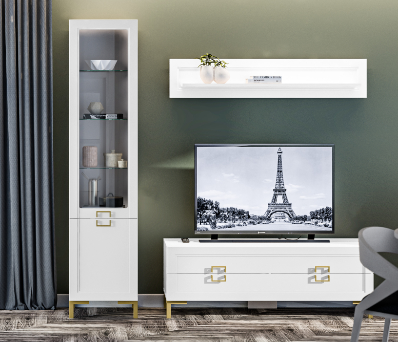 Комплект для гостиной с витриной Ассоль, Белый Код 00000336484